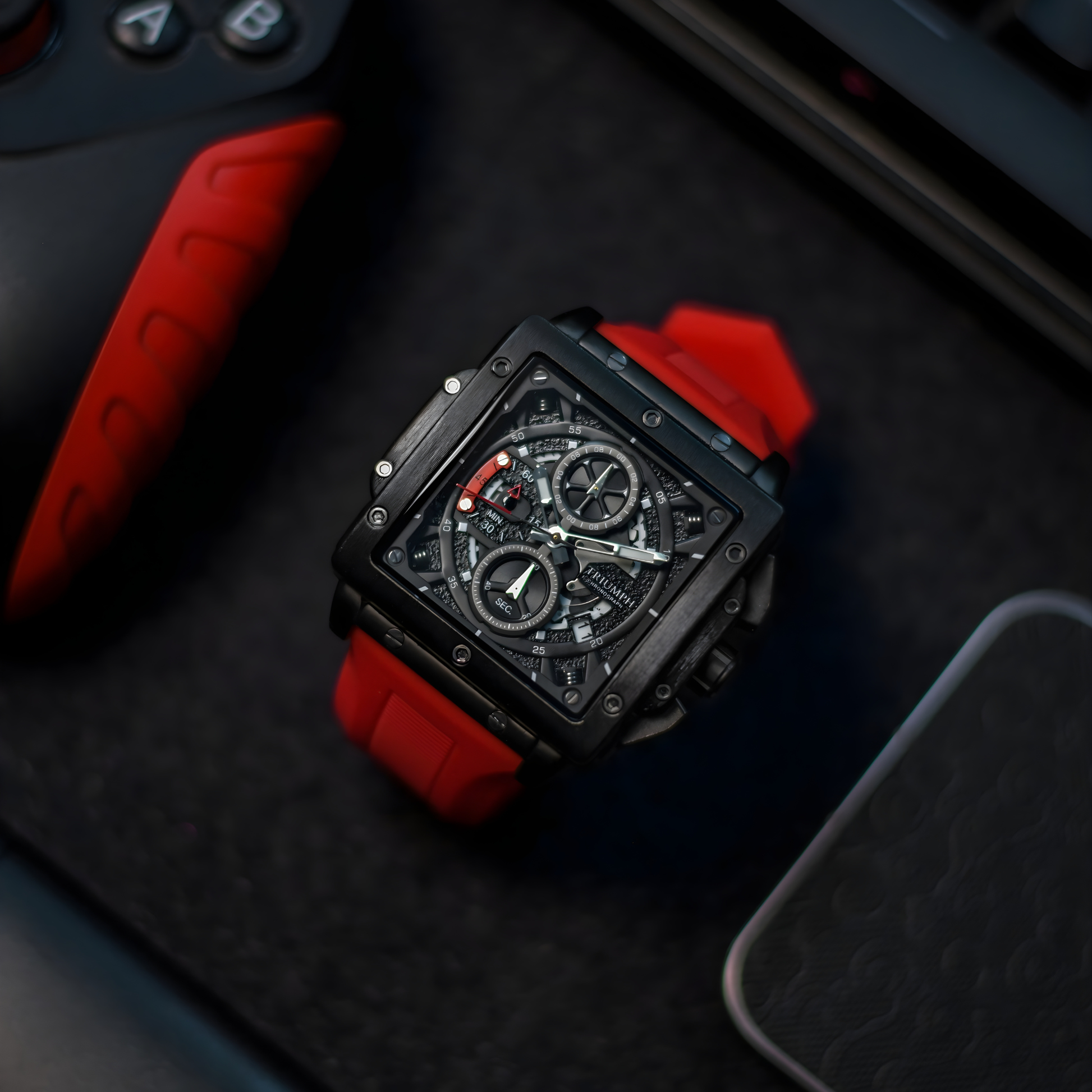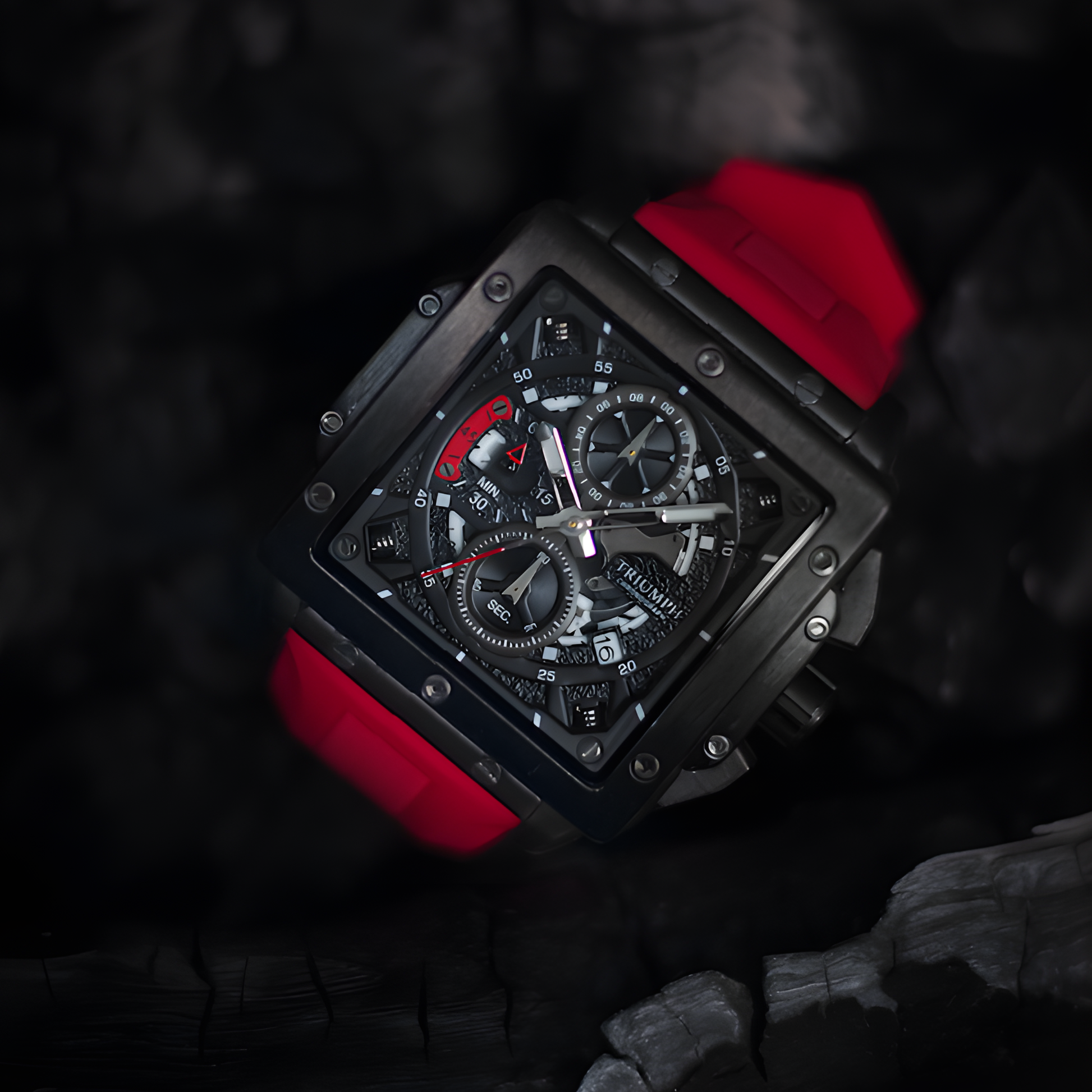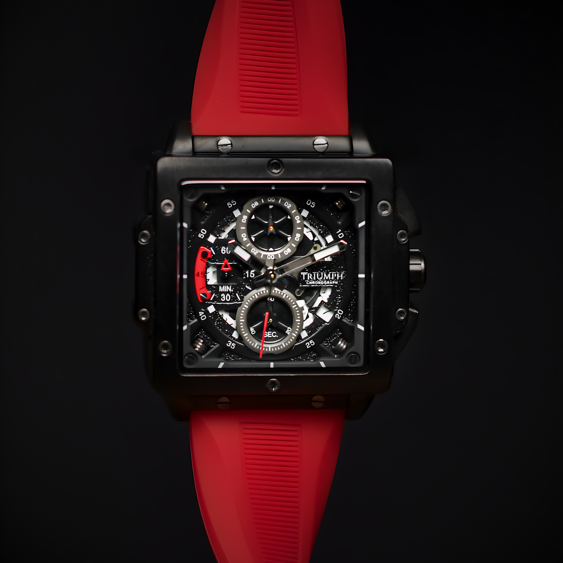 The Zeus features a striking multi-layer dial with exposed chronograph architecture, giving the watch a powerful, industrial presence. Every screw, bevel, and subdial is crafted with purpose — creating a design that blends complexity, clarity, and attitude.